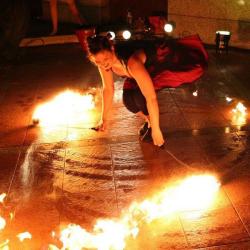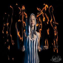 Book her for a 10-15 minute spotlight act, or ambient sets as a fire performer.